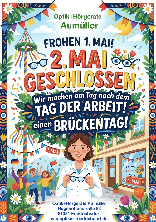 Ihr Inhaber geführter Meisterfachbetrieb für Brillen – Kontaktlinsen – Hörgeräte und Kinderbrillen freut sich auf sie. In Friedrichsdorf und Umgebung sind wir Ihr Meisterfachbetrieb für Brillen Kontaktlinsen und Hörgeräte. Meine Name ist Eric Aumüller - Augenoptikermeister & Hörgeräteakustikermeister. Mein Motto: Brillant Hören und Sehen und daher fühle ich mich verpflichtet jedem die optimalen Seh-/ Hörhilfen anzupassen. Diese werden von uns individuell ausgesucht und in unserer für Sie in unserer Werkstatt angefertigt. Mein Team und ich kümmern uns um Ihre Augen und Ohren aber vor allem um den Menschen dazwischen. Ein zufriedener Kunde ist uns das Wichtigste. Ich freue mich auf Ihren Besuch. Ihr Eric Aumüller